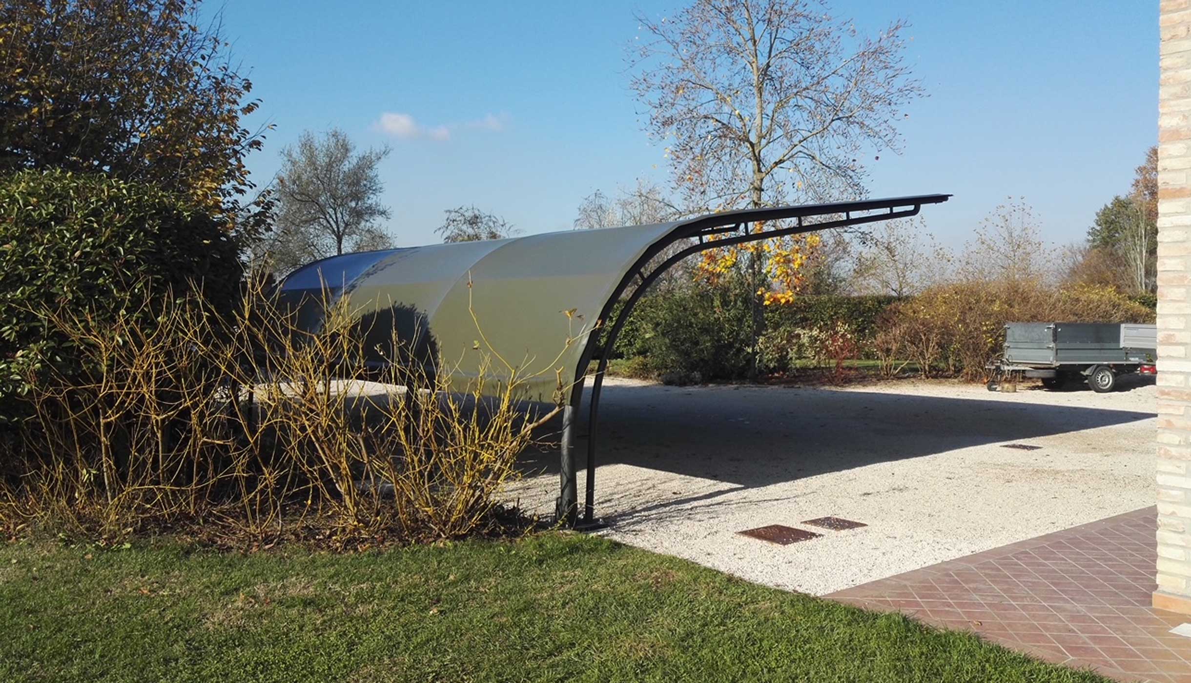 La copertura per auto impermeabile CoverMet risponde alle normative in vigore ed è idonea a sostenere il carico della neve fino a circa 60 kg al metro quadrato, risultando conforme alla zona 3 definita dal Testo Unico del 2018 per altitudini inferiori a 200 metri slm.